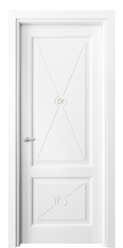 Оригинальным решением в этой коллекции является возможность создания монограммы. Она выполняется в технике инкрустация и подчеркивает очарование образа двери. Базовый вариант — монограмма с буквой В, которая символизирует название компании Волховец. Также мы можем создать индивидуальную монограмму с вашими инициалами. Такое решение может стать прекрасным началом семейной традиции.