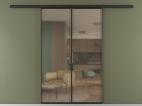 Во всех алюминиевых перегородках, независимо от типа установки, используется компланарный раздвижной механизм, благодаря которому декоративная крышка и полотно находятся в одной плоскости.