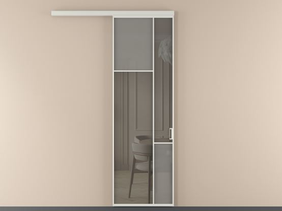 Во всех алюминиевых перегородках, независимо от типа установки, используется компланарный раздвижной механизм, благодаря которому декоративная крышка и полотно находятся в одной плоскости.