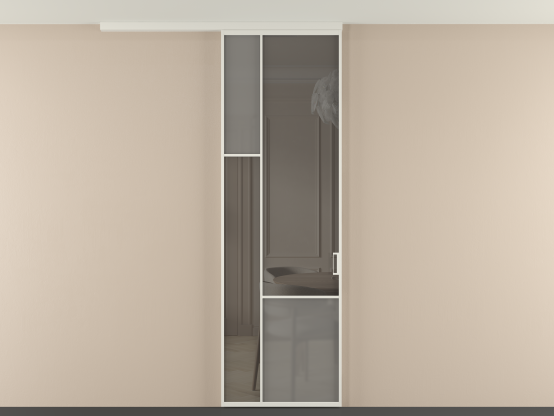Во всех алюминиевых перегородках, независимо от типа установки, используется компланарный раздвижной механизм, благодаря которому декоративная крышка и полотно находятся в одной плоскости.