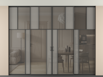 Во всех алюминиевых перегородках, независимо от типа установки, используется компланарный раздвижной механизм, благодаря которому декоративная крышка и полотно находятся в одной плоскости.
