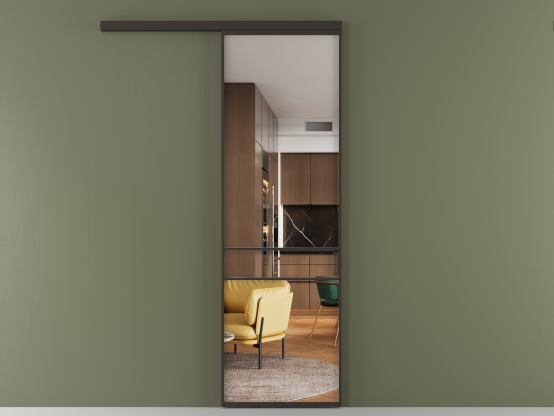 Во всех алюминиевых перегородках, независимо от типа установки, используется компланарный раздвижной механизм, благодаря которому декоративная крышка и полотно находятся в одной плоскости.