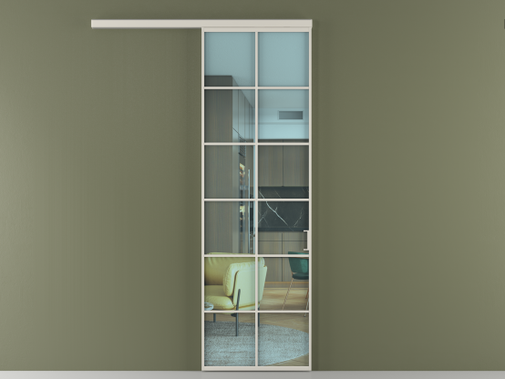 Во всех алюминиевых перегородках, независимо от типа установки, используется компланарный раздвижной механизм, благодаря которому декоративная крышка и полотно находятся в одной плоскости.