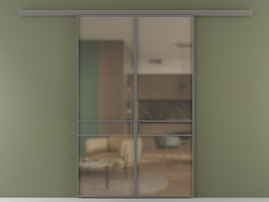 Во всех алюминиевых перегородках, независимо от типа установки, используется компланарный раздвижной механизм, благодаря которому декоративная крышка и полотно находятся в одной плоскости.