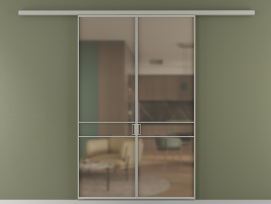 Во всех алюминиевых перегородках, независимо от типа установки, используется компланарный раздвижной механизм, благодаря которому декоративная крышка и полотно находятся в одной плоскости.