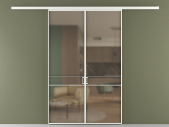 Во всех алюминиевых перегородках, независимо от типа установки, используется компланарный раздвижной механизм, благодаря которому декоративная крышка и полотно находятся в одной плоскости.