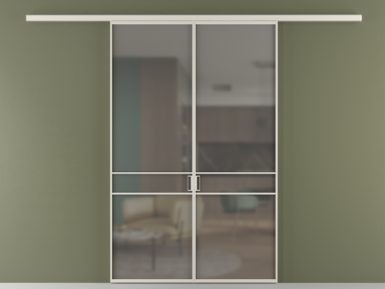 Во всех алюминиевых перегородках, независимо от типа установки, используется компланарный раздвижной механизм, благодаря которому декоративная крышка и полотно находятся в одной плоскости.