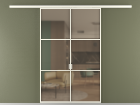 Во всех алюминиевых перегородках, независимо от типа установки, используется компланарный раздвижной механизм, благодаря которому декоративная крышка и полотно находятся в одной плоскости.