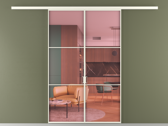 Алюминиевые перегородки имеют единый профиль с алюминиевыми дверьми и легко сочетаются в одном пространстве, не перегружая его. Также их можно комбинировать в интерьере с полотнами из нашего стандартного ассортимента. Помимо этого, система алюминиевых перегородок и дверей координируется со стеновыми панелями Волховец.