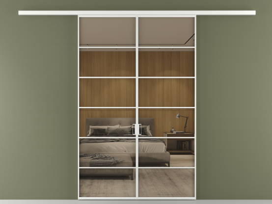 Во всех алюминиевых перегородках, независимо от типа установки, используется компланарный раздвижной механизм, благодаря которому декоративная крышка и полотно находятся в одной плоскости.