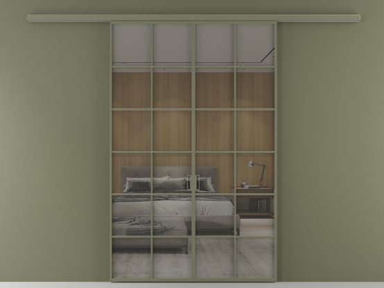 Во всех алюминиевых перегородках, независимо от типа установки, используется компланарный раздвижной механизм, благодаря которому декоративная крышка и полотно находятся в одной плоскости.