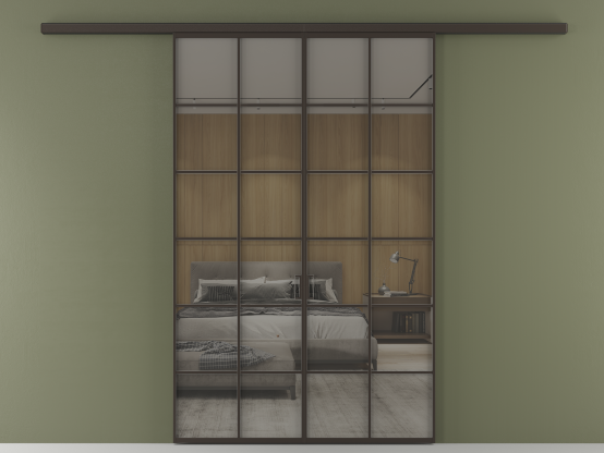 Во всех алюминиевых перегородках, независимо от типа установки, используется компланарный раздвижной механизм, благодаря которому декоративная крышка и полотно находятся в одной плоскости.