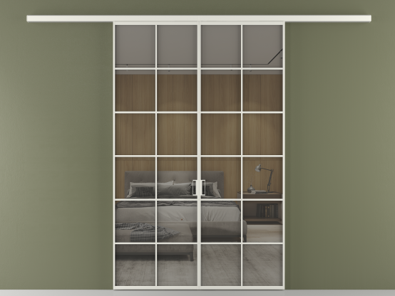 Во всех алюминиевых перегородках, независимо от типа установки, используется компланарный раздвижной механизм, благодаря которому декоративная крышка и полотно находятся в одной плоскости.