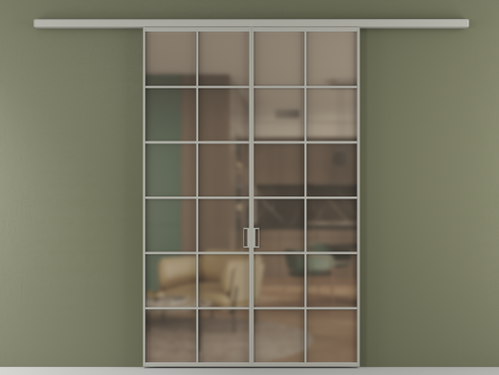 Во всех алюминиевых перегородках, независимо от типа установки, используется компланарный раздвижной механизм, благодаря которому декоративная крышка и полотно находятся в одной плоскости.