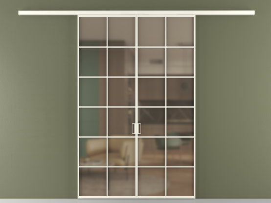 Во всех алюминиевых перегородках, независимо от типа установки, используется компланарный раздвижной механизм, благодаря которому декоративная крышка и полотно находятся в одной плоскости.