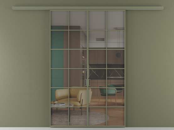 Во всех алюминиевых перегородках, независимо от типа установки, используется компланарный раздвижной механизм, благодаря которому декоративная крышка и полотно находятся в одной плоскости.