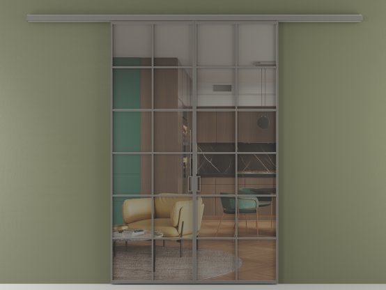 Алюминиевые перегородки имеют единый профиль с алюминиевыми дверьми и легко сочетаются в одном пространстве, не перегружая его. Также их можно комбинировать в интерьере с полотнами из нашего стандартного ассортимента. Помимо этого, система алюминиевых перегородок и дверей координируется со стеновыми панелями Волховец.