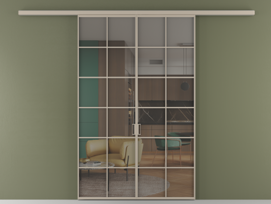 Во всех алюминиевых перегородках, независимо от типа установки, используется компланарный раздвижной механизм, благодаря которому декоративная крышка и полотно находятся в одной плоскости.