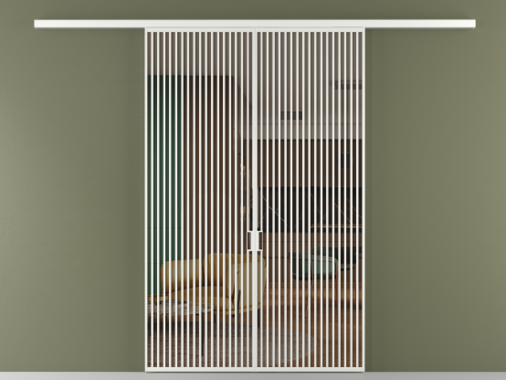 Во всех алюминиевых перегородках, независимо от типа установки, используется компланарный раздвижной механизм, благодаря которому декоративная крышка и полотно находятся в одной плоскости.