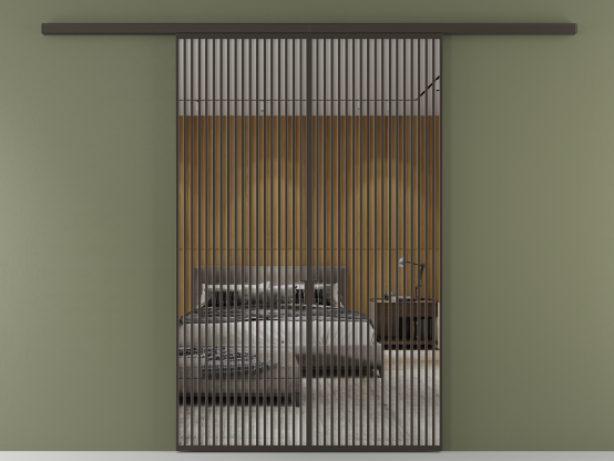 Во всех алюминиевых перегородках, независимо от типа установки, используется компланарный раздвижной механизм, благодаря которому декоративная крышка и полотно находятся в одной плоскости.