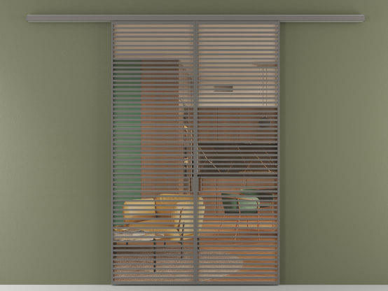 Во всех алюминиевых перегородках, независимо от типа установки, используется компланарный раздвижной механизм, благодаря которому декоративная крышка и полотно находятся в одной плоскости.