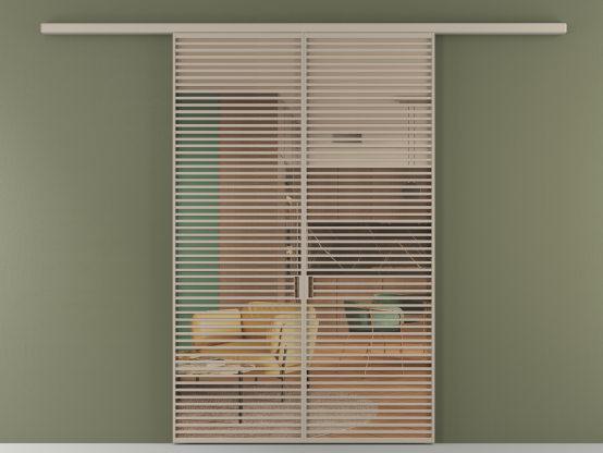 Во всех алюминиевых перегородках, независимо от типа установки, используется компланарный раздвижной механизм, благодаря которому декоративная крышка и полотно находятся в одной плоскости.