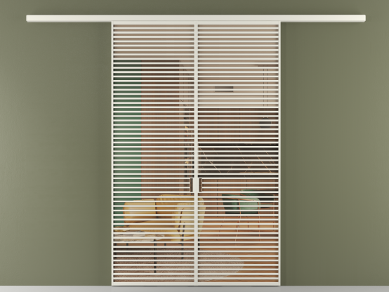 Во всех алюминиевых перегородках, независимо от типа установки, используется компланарный раздвижной механизм, благодаря которому декоративная крышка и полотно находятся в одной плоскости.