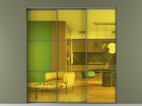 АЛПР 040.03. Алюминий оливковый тёмный Прозрачное жёлтое стекло, триплекс, 6мм