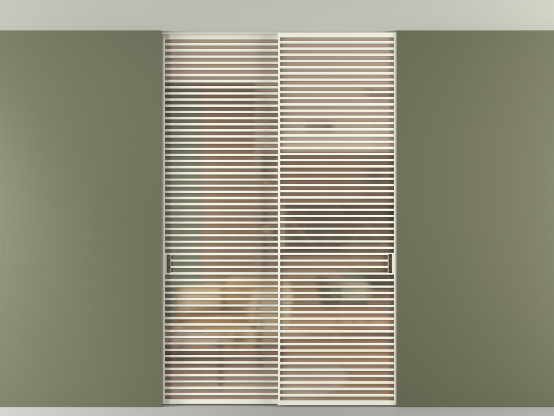 Во всех алюминиевых перегородках, независимо от типа установки, используется компланарный раздвижной механизм, благодаря которому декоративная крышка и полотно находятся в одной плоскости.
