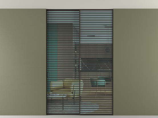 Во всех алюминиевых перегородках, независимо от типа установки, используется компланарный раздвижной механизм, благодаря которому декоративная крышка и полотно находятся в одной плоскости.