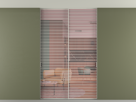Во всех алюминиевых перегородках, независимо от типа установки, используется компланарный раздвижной механизм, благодаря которому декоративная крышка и полотно находятся в одной плоскости.