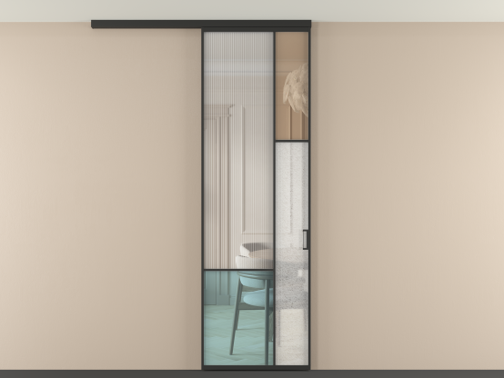 Во всех алюминиевых перегородках, независимо от типа установки, используется компланарный раздвижной механизм, благодаря которому декоративная крышка и полотно находятся в одной плоскости.