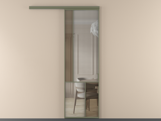Во всех алюминиевых перегородках, независимо от типа установки, используется компланарный раздвижной механизм, благодаря которому декоративная крышка и полотно находятся в одной плоскости.
