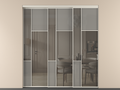 Перегородка Mosaic внутри проёма 3 створки с синхронным механизмом