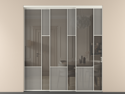 Перегородка Mosaic внутри проёма 3 створки с синхронным механизмом