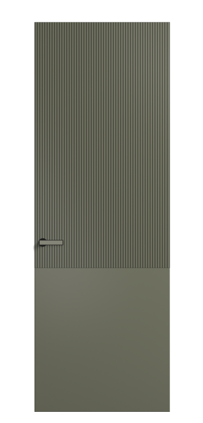 Это полотна с рельефной фрезеровкой. Этот прием делает интерьер объемным, тактильным, вносит интересную текстуру и создает современный образ. Волнистый рельеф может быть выполнен по ламелям из массива дуба в древесных матовых отделках, либо исполнен по натуральному и экологически безопасному материалу — ХДФ, покрытому гладкой эмалью актуальных оттенков.