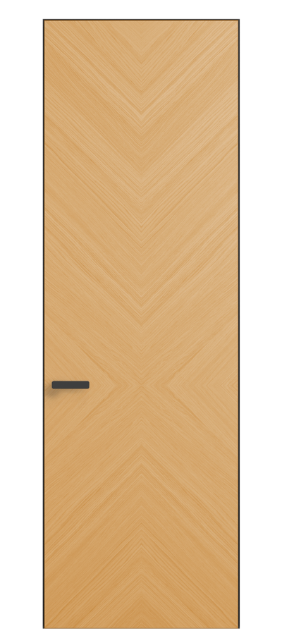 Полотно Rift в скрытом алюминиевом коробе становится полноценным элементом декора. В коллекции представлено 9 моделей дверей в высоте до 3 метров. Рисунок раскладки шпона варьируется от простого до сложного. «Рубашка» для каждого полотна подбирается вручную по цвету, текстуре и фактуре.