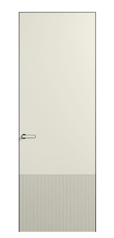 Это полотна с рельефной фрезеровкой. Этот прием делает интерьер объемным, тактильным, вносит интересную текстуру и создает современный образ. Волнистый рельеф может быть выполнен по ламелям из массива дуба в древесных матовых отделках, либо исполнен по натуральному и экологически безопасному материалу — ХДФ, покрытому гладкой эмалью актуальных оттенков.