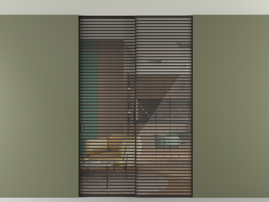 Во всех алюминиевых перегородках, независимо от типа установки, используется компланарный раздвижной механизм, благодаря которому декоративная крышка и полотно находятся в одной плоскости.