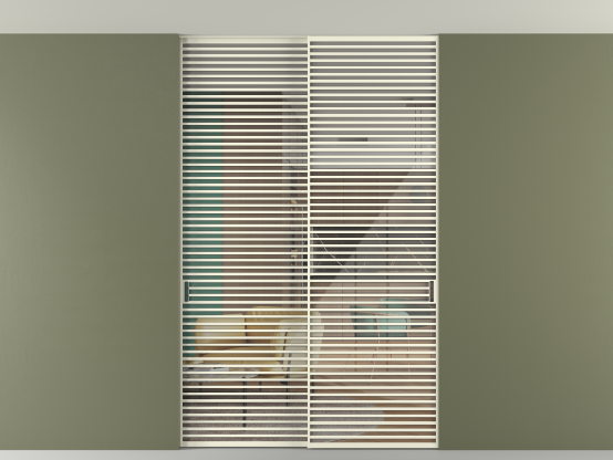 Во всех алюминиевых перегородках, независимо от типа установки, используется компланарный раздвижной механизм, благодаря которому декоративная крышка и полотно находятся в одной плоскости.