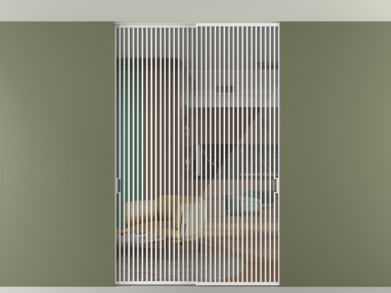 Во всех алюминиевых перегородках, независимо от типа установки, используется компланарный раздвижной механизм, благодаря которому декоративная крышка и полотно находятся в одной плоскости.
