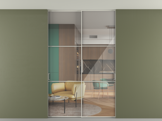 Перегородка Formato внутри проёма скрытое крепление в потолок 2 створки