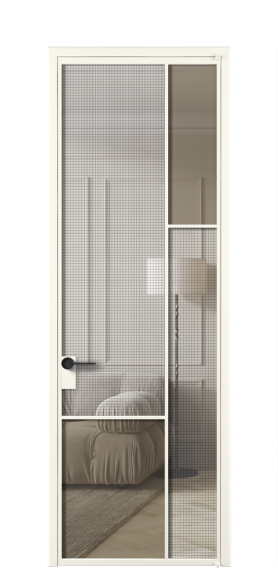 Дверь межкомнатная АЛПЛ041.23 АСБЖ Серый сатин матовое + Серый прозрачное. Цвет Алюминий светло-бежевый. Материал Алюминий в эмали. Коллекция Mosaic. Картинка.