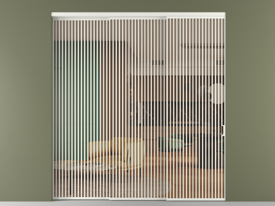 Дополнительно на раздвижную двустворчатую перегородку вдоль стены и четырёхстворчатую перегородку внутри проёма с двумя неподвижным полотнами можно установить механизм синхронного открывания — при открывании одной створки, вторая открывается автоматически.