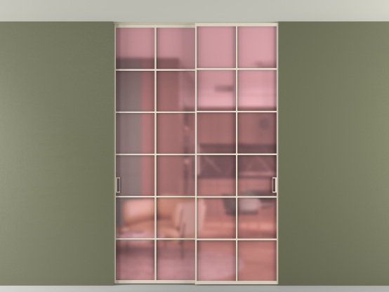 АЛПР 040.05. Алюминий бежево-серый Сатинированное розовое стекло, триплекс, 6мм