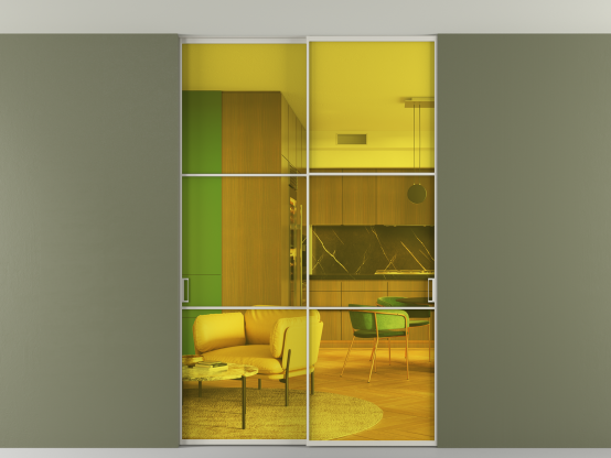 АЛПР 040.03. Алюминий тёплый серый Прозрачное жёлтое стекло, триплекс, 6мм