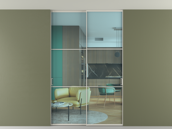 Перегородка Formato внутри проёма скрытое крепление в потолок 2 створки