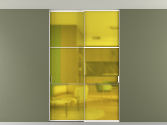 АЛПР 040.03. Алюминий пудровый белый Сатинированное жёлтое стекло, триплекс, 6мм
