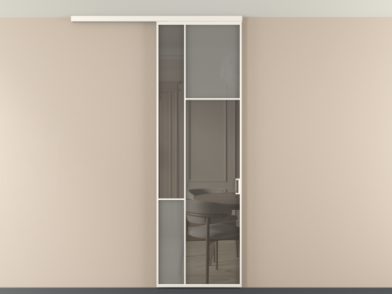 Во всех алюминиевых перегородках, независимо от типа установки, используется компланарный раздвижной механизм, благодаря которому декоративная крышка и полотно находятся в одной плоскости.