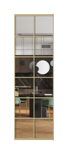 Минималистичный профиль повторяет форму профиля алюминиевых раздвижных перегородок Формато, что позволяет легко сочетать оба решения в одном пространстве.